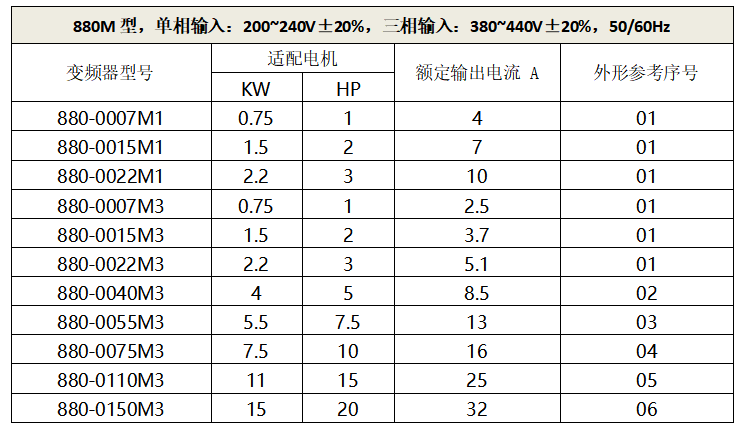 功率范围:0.75-2.2KW AC220V;0.75-15KW AC380V